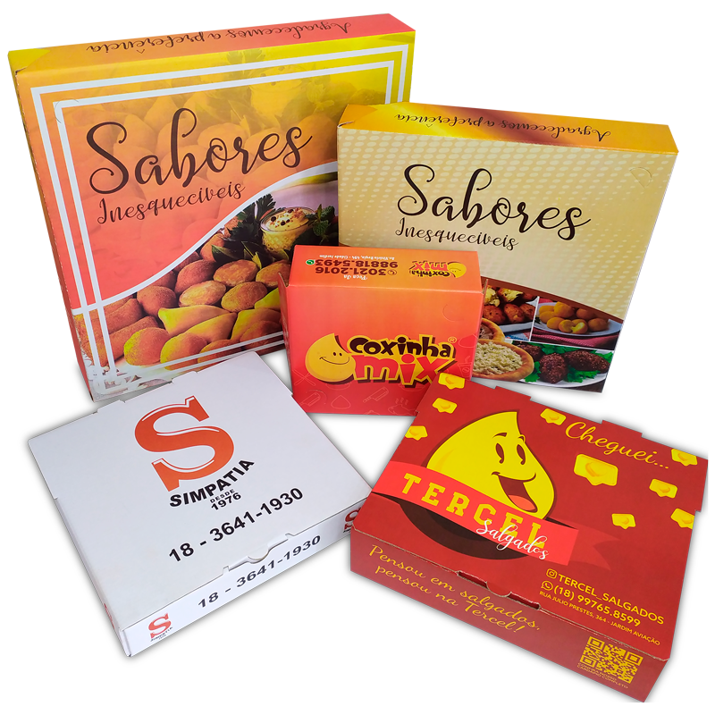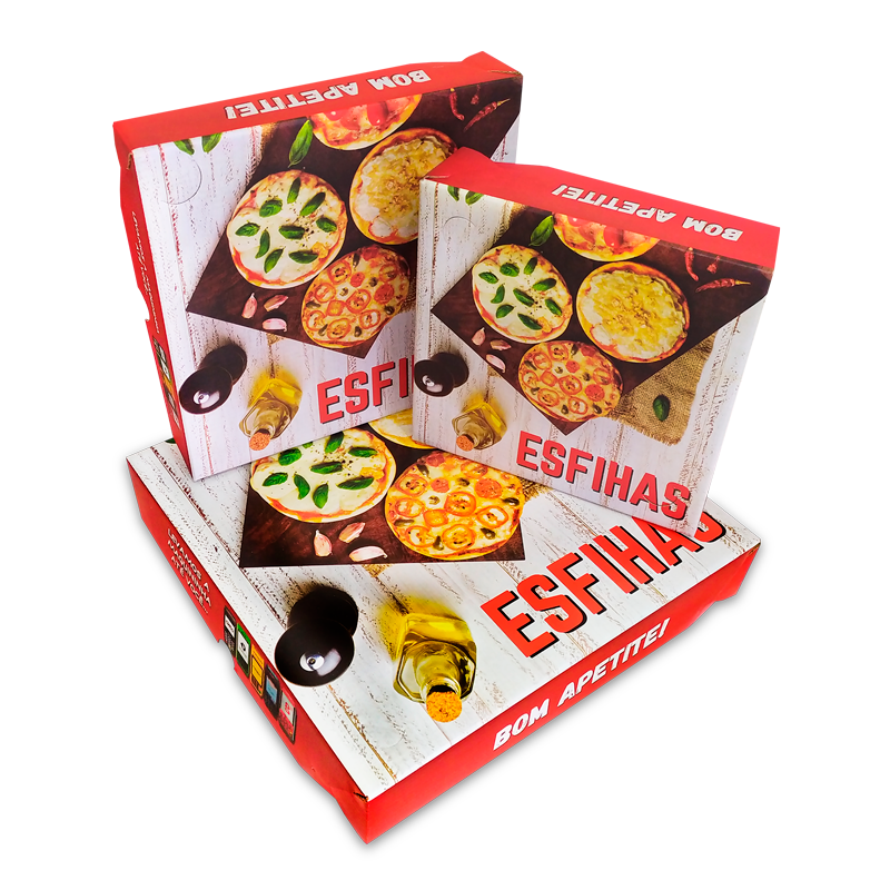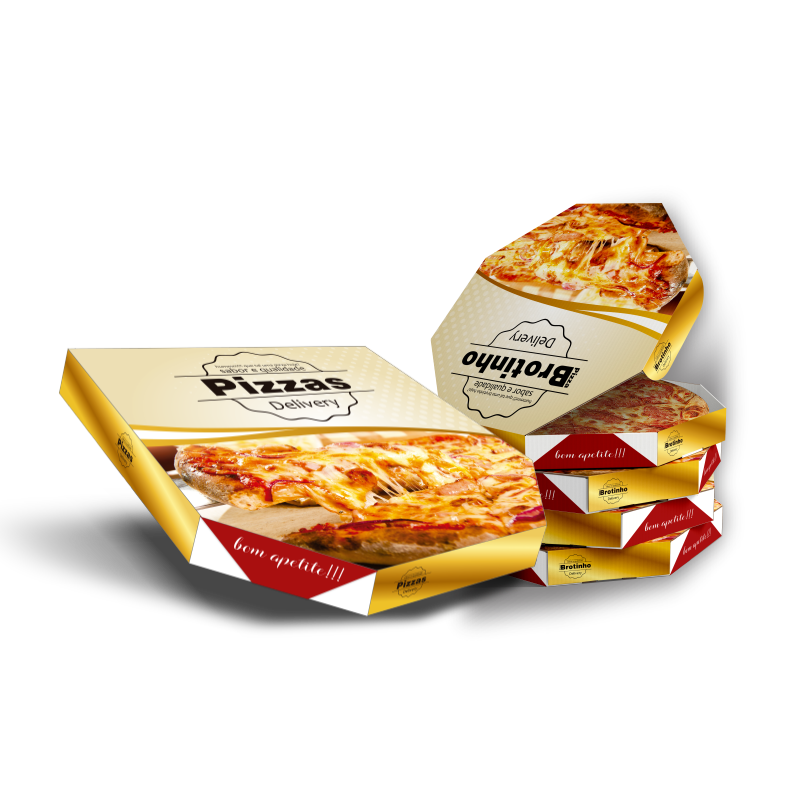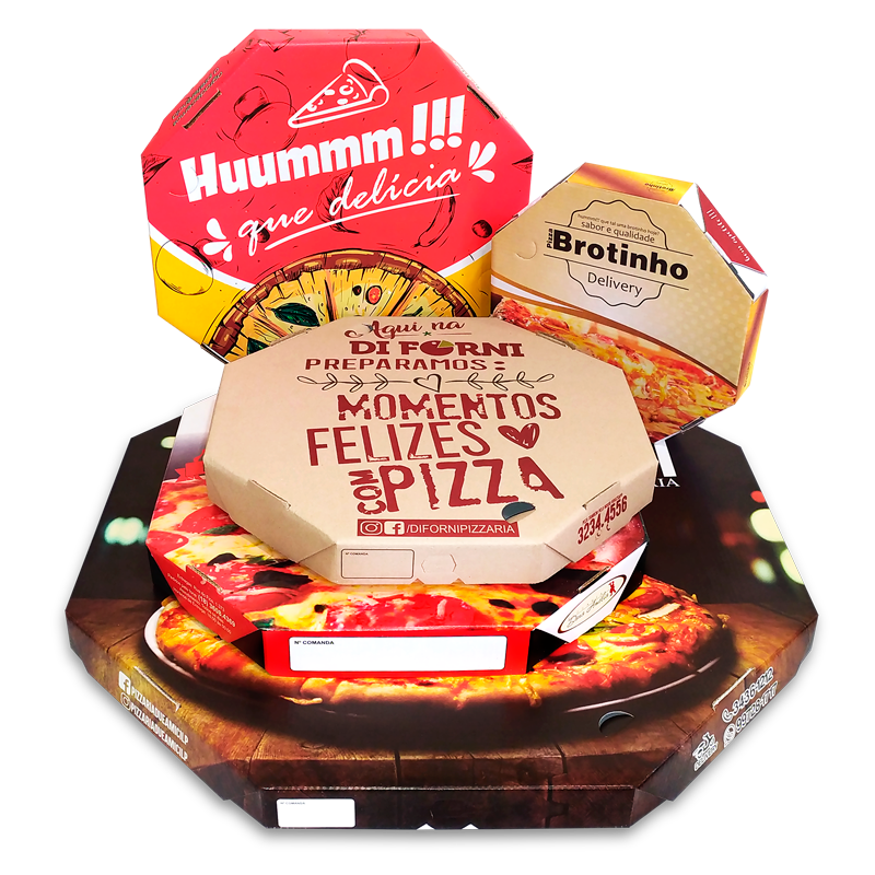 – Embalagem oitavada, quadrada, broto, americana, calzone e outros tamanhos diferenciados.